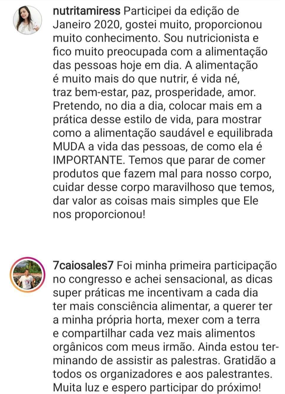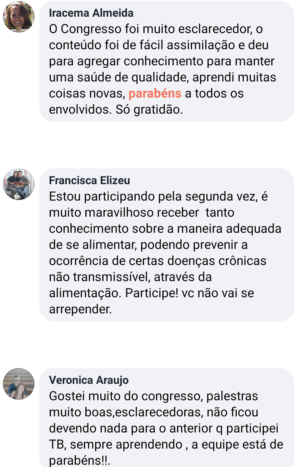 Todas as palestras foram gravadas exclusivamente para nosso congresso, por diferentes profissionais, como nutricionistas, médicos, chefs de cozinha, terapeutas, educadores e outros.